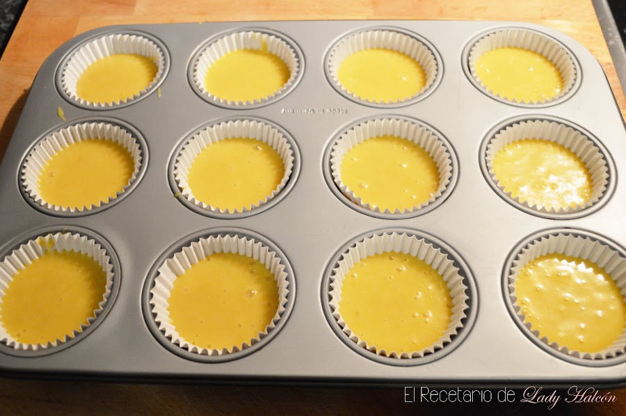 Hornéalas durante 12-14 minutos hasta que tengan un tono dorado. Puedes pincharla con un palillo y si éste sale limpio, las magdalenas ya estarán listas.