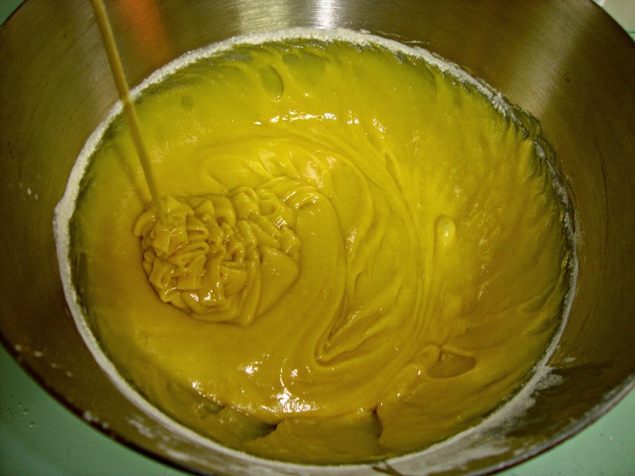 Finalmente añadimos la harina con la levadura poco a poco y batimos hasta que la masa sea homogénea y sin grumos.