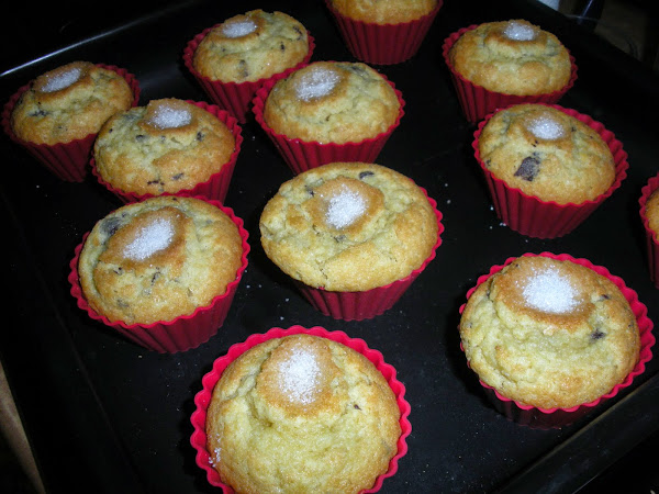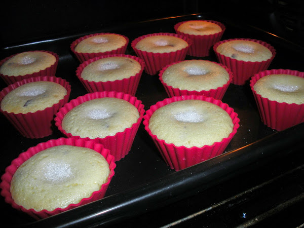Le ponemos una pizca de azúcar encima para adorno e introducimos las magdalenas en el horno a unos 170º con el ventilador entre 15-20 minutos.