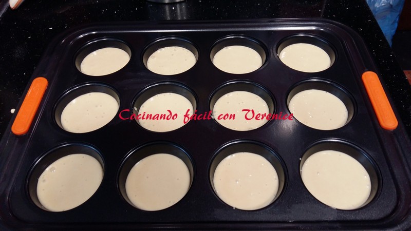 Se vuelve a batir la masa unos segundos para que quede de nuevo homogénea y se vierte en los moldes que vayáis a utilizar, se rellenan solo los 3/4 de la capacidad para que no se derramen al subir las magdalenas.