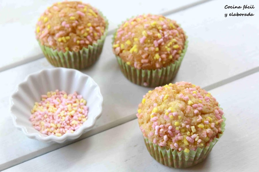 MAGDALENAS CON FIDEOS DE AZUCAR