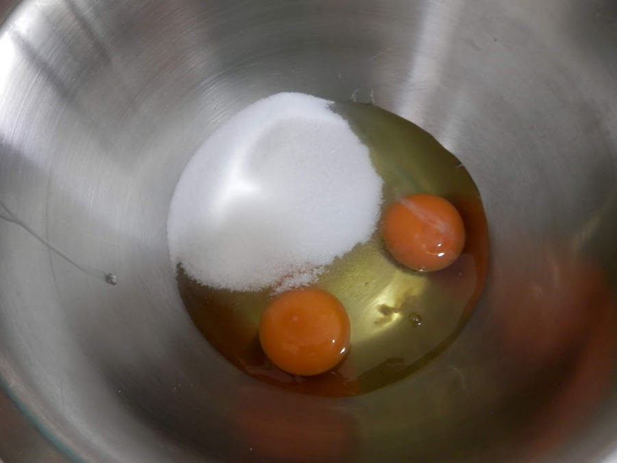 En un bol grande, mezcla y bate bien la fructosa con los huevos hasta que estén esponjosos.