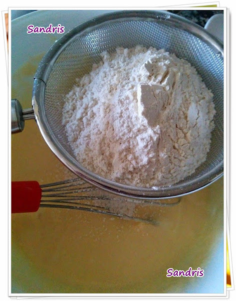 Después incorporamos la levadura y la harina a la masa tamizándolas. Y finalmente agregamos la crema de limón también a temperatura ambiente o algo templada, no hay que ponerla recién sacada de la nevera porque está muy fría, mejor sacarla unas horas antes para que pierda el frío o dejarla templar un poco si está recién hecha.