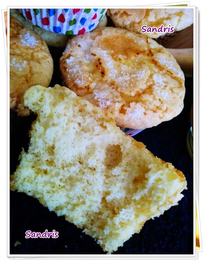 Sé que mucha gente está esperando estas recetas de las que os hablo pero bueno, el mérito no es mío al 100%, yo sólo he hecho unas pequeñas modificaciones pero la receta es gracias a una pastelera que conocí no hace demasiado y me gusta mucho todo lo que hace. Supongo que muchos de vosotros habréis oído hablar de ella y sino a partir de ahora si la seguís, veréis como os gusta todo lo que hace. La pastelera en particular es Esther Sánchez, así que os dejo el enlace a sus bizcochitos de limón. ¿Y dónde está el cambio que yo he hecho? Pues ella usa ralladura de limón y zumo de limón, y yo he usado crema de limon o lemon curd en vez de usar el limón tal cual. Ella también ha usado el molde para magdalenas sin el papel correspondiente y yo sí lo he usado. Y otra diferencia, es que ella ha glaseado los bizcochitos y yo les he puesto azúcar por encima en vez de glasearlos. Como os decía... son pequeños toques que hacen una diferencia, pero vamos, la receta base es de ella.