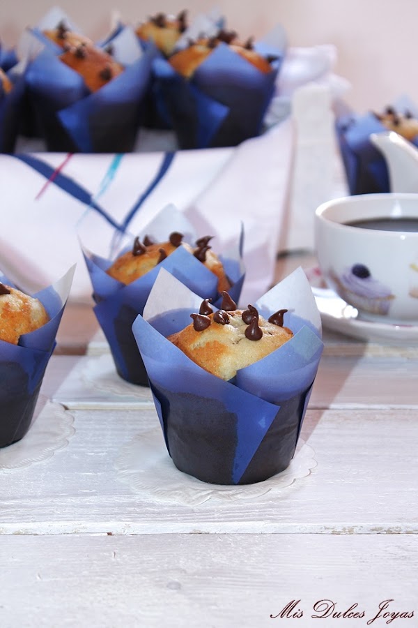 Sobre las pepitas de chocolate, os tengo que decir, que si se mezclan con una masa de bizcocho o de magdalenas bastante liquida (como es el caso de esta receta), por su peso es muy normal que algunas se bajen en el fondo.