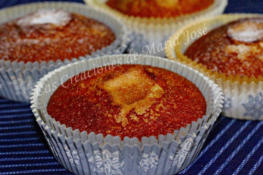 Repartir la masa en moldes de magdalenas. Para que salga el copete echar un poquito de azúcar en el centro de la masa de cada magdalena.
