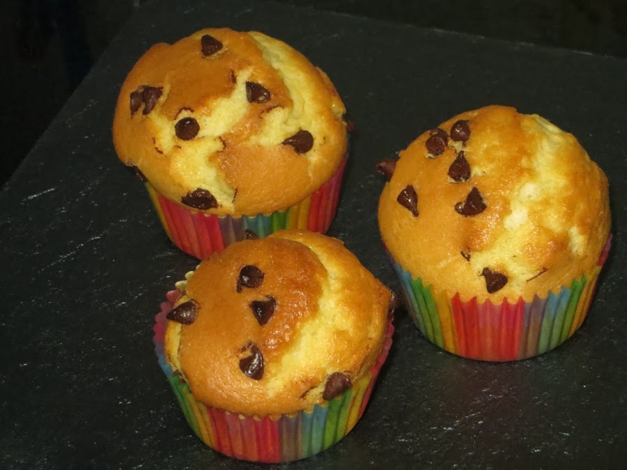 Batimos los huevos con el azúcar hasta que doblen su volumen, luego le añadimos el aceite y la leche y seguimos batiendo. Ahora tamizamos la harina junto con la levadura y la sal y lo vamos añadiendo poco a poco a la mezcla anterior. Echamos las chispas de chocolate al gusto en función de lo que os guste este dulce.