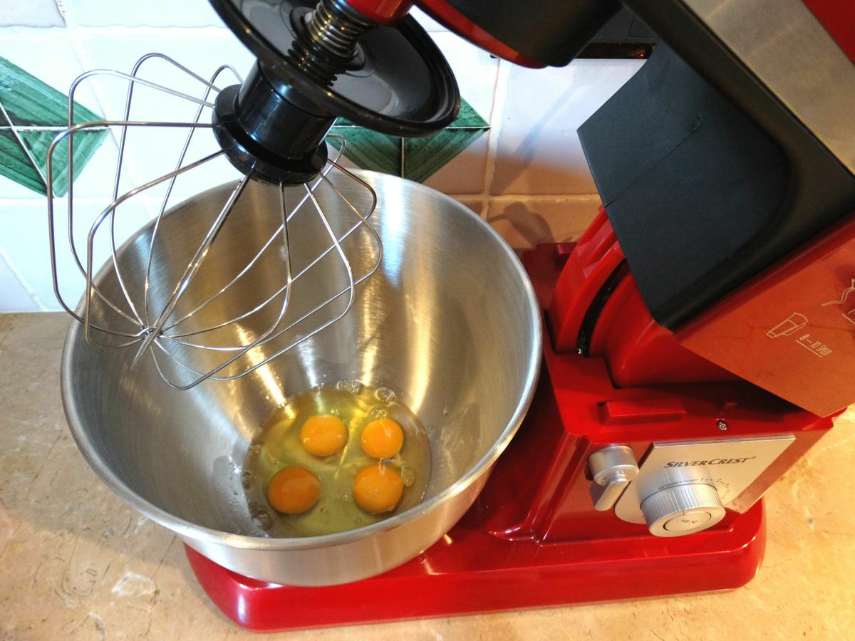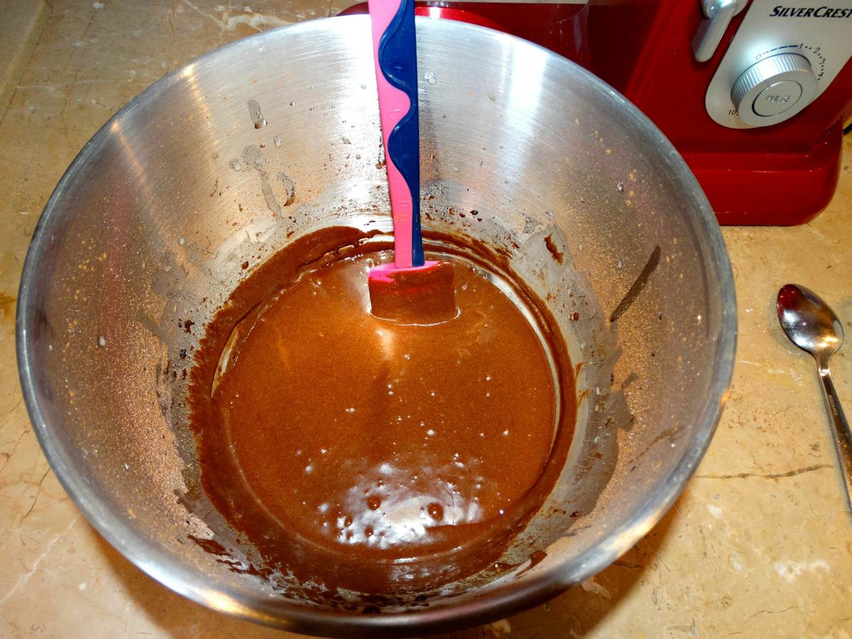Ahora le vamos añadiendo las harinas a cucharadas mientras batimos
