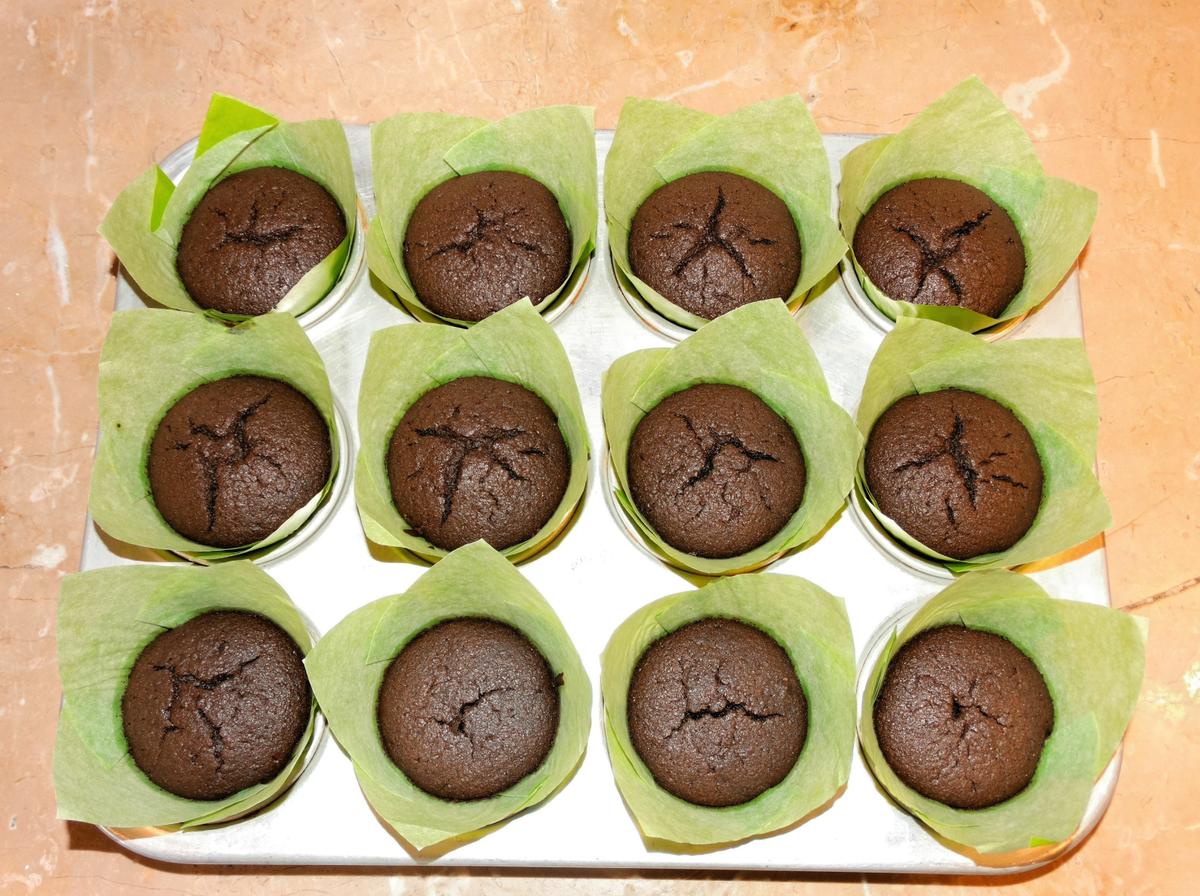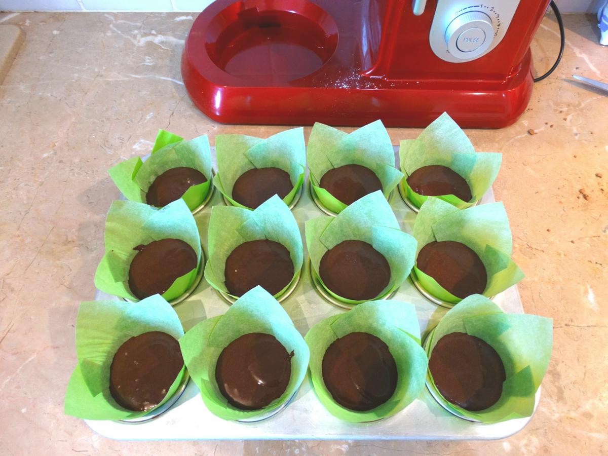 Preparamos la bandeja de cupcakes con capsulas de papel, yo he usado unas para muffins.