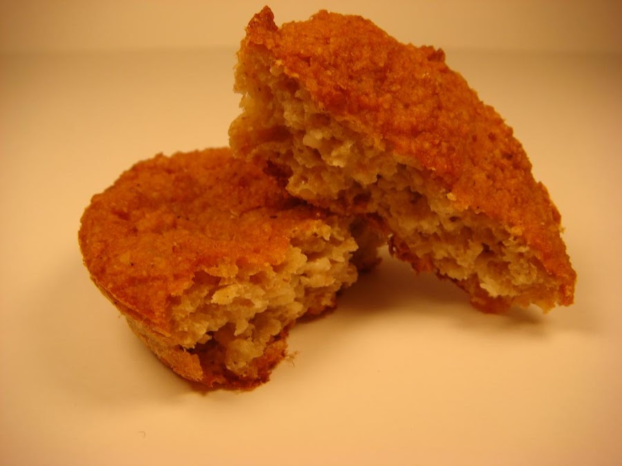 Mezclamos todos los ingredientes y batimos fuerte con la batidora, quedará una masa bastante espesa, se puede aligerar un poquito con una cucharadita de leche desnatada, pero sin pasarnos. volcamos en moldes de silicona y metemos al horno precalentado a 180 º durante unos 35 min. aprox.