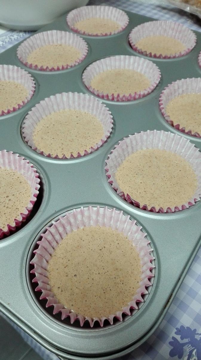Llenamos las cápsulas de papel con la mezcla hasta 2/3 de su capacidad (las mías iban menos llenas)