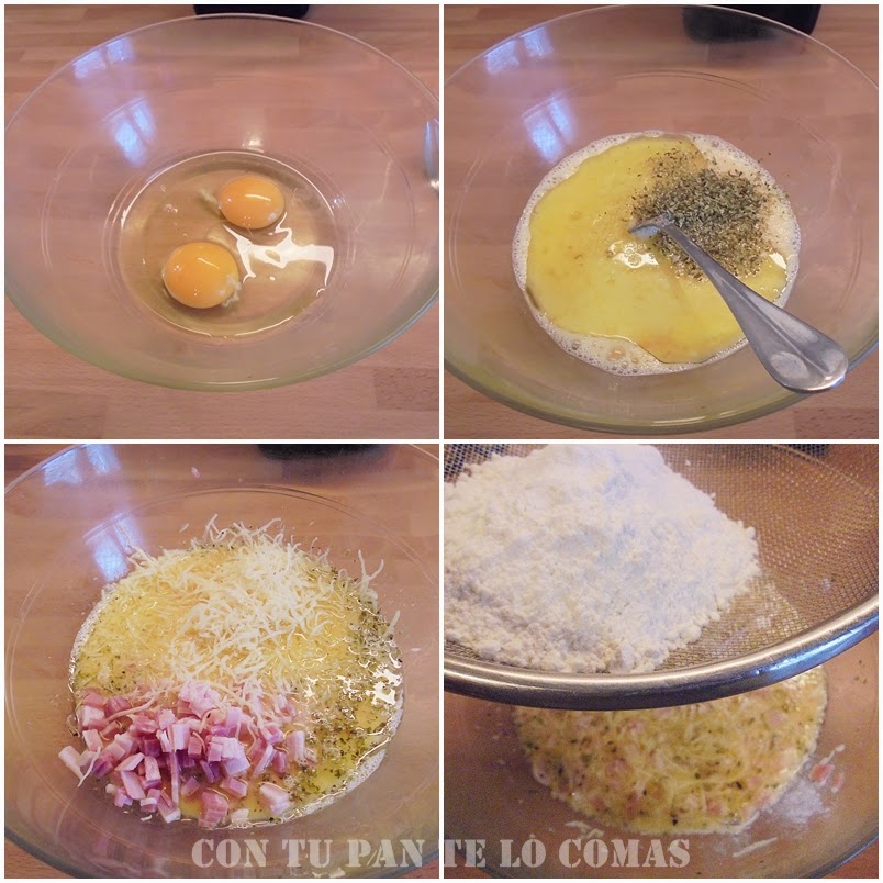 1. Batimos los huevos en un bol con un chorrito de leche. Añadimos el aceite, el orégano y un poco de sal.