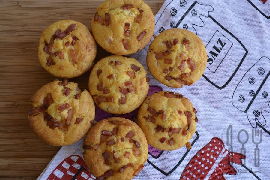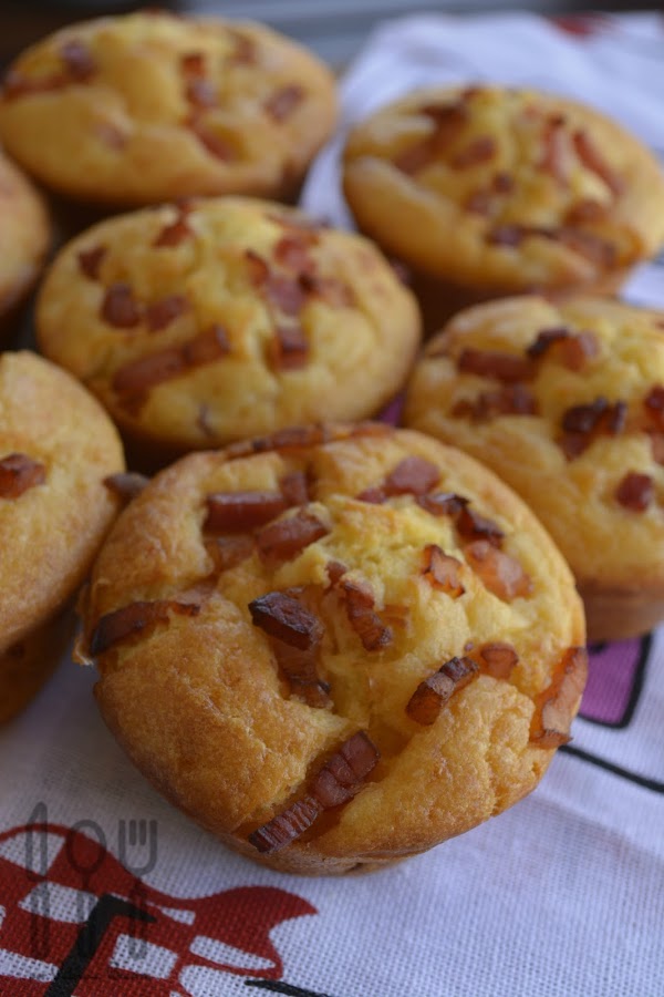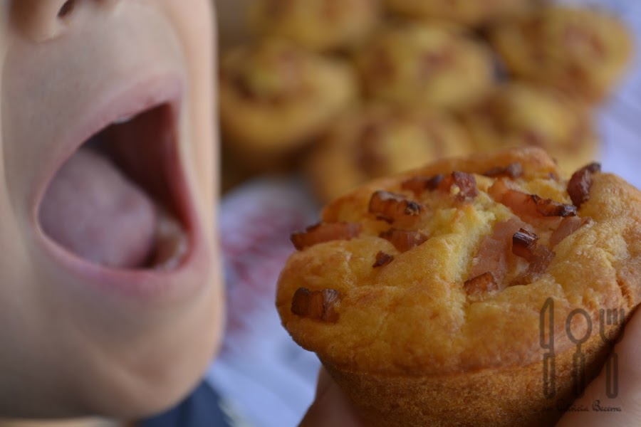 Repartimos la masa en las cápsuslas y por encima, ponemos el beicon que teníamos reservado.