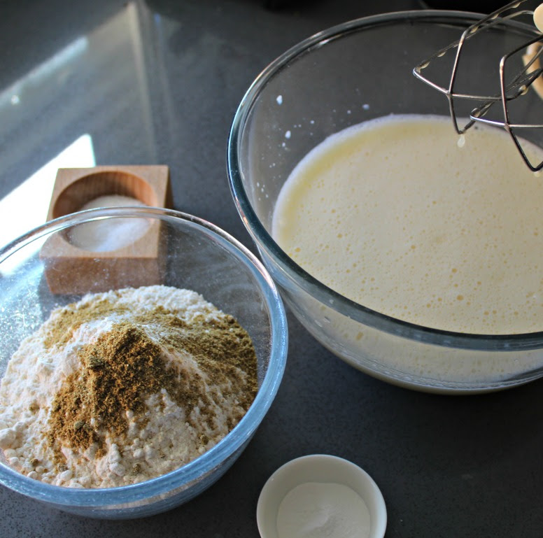 Mezclaremos aparte la harina con el impulsor, la sal y el cilantro.