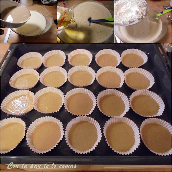 7. Rellenar hasta la mitad las cápsulas de magdalenas y meter en el horno previamente calentado a 200ºC durante 15 minutos.