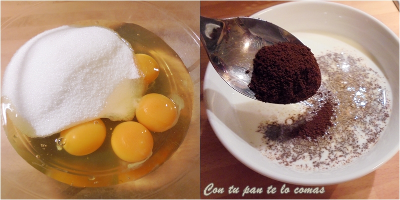 3. Añadir poco a poco la leche con el café disuelto al bol de los huevos.