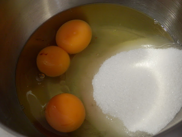 Bate los huevos con el azúcar hasta que quede una crema homogénea.
