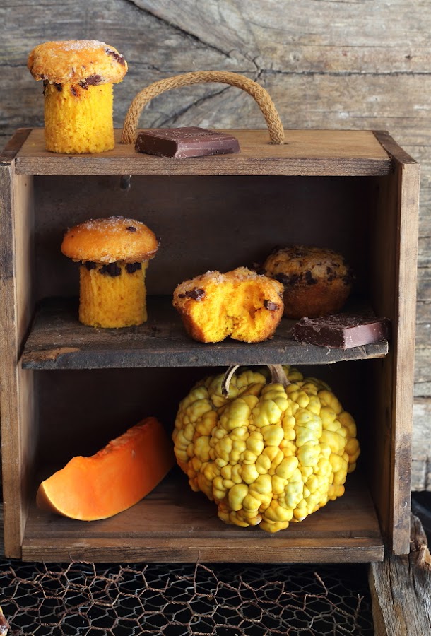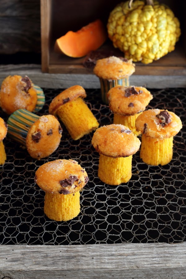 En un bol mezclamos las dos cucharadas de azúcar con la canela en polvo y el chocolate troceado y espolvoreamos las magdalenas.