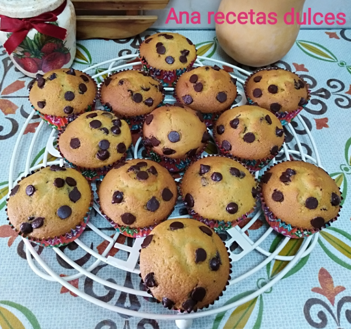 Estas magdalenas de calabaza y pepitas de chocolate están riquísimas, perfectas para tomar en el desayuno o en la merienda, te encantarán!