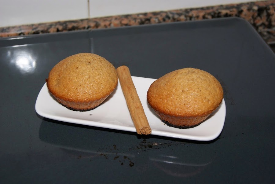Mezclamos los huevos con el azúcar hasta obtener una mezcla homogénea. Mezclamos la harina con la levadura y la añadimos poco a poco a los huevos sin dejar de remover. Cuando lo tengamos bien ligado añadimos la canela y seguimos removiendo. Finalmente añadimos la mantequilla y mezclamos todo muy bien. Colocamos en moldes llenando hasta más o menos la mitad e introducimos en el horno. Horneamos 15-20 minutos, hasta que al introducir un palillo lo saquemos seco.