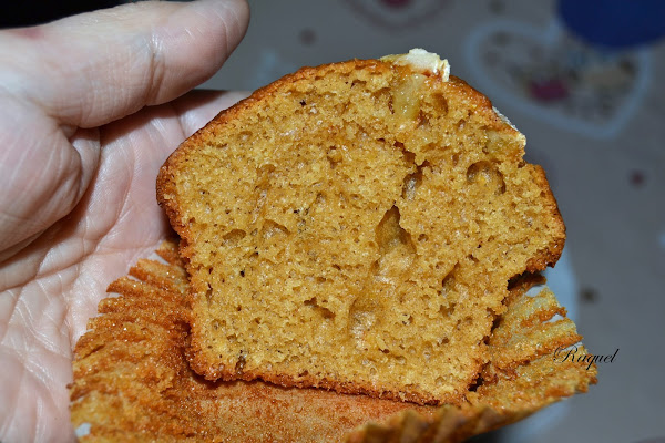 La verdad es que nunca había hecho antes unas magdalenas con esta harina, de hecho solo la he utilizado para hacer pan y me ha gustado el resultado de su sabor, aunque gran parte de ello a sido por lo ricas que han quedado con la naranja confitada y que decir de su color me ha gustado mucho porque tampoco las había hecho nunca con este azúcar, el resultado un color moreno irresistible, vamos que he quedado satisfecha con el resultado, es una pena que no pueda trasmitiros el olor que hay en toda mi casa, pero creo que os hacéis una pequeña idea, no?