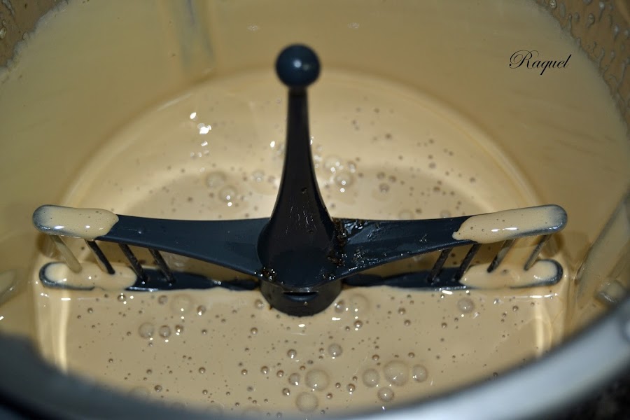 Vierte la leche, el aceite y la sal dentro del vaso y ponemos 10 seg./vel. 2, después retiramos la mariposa.