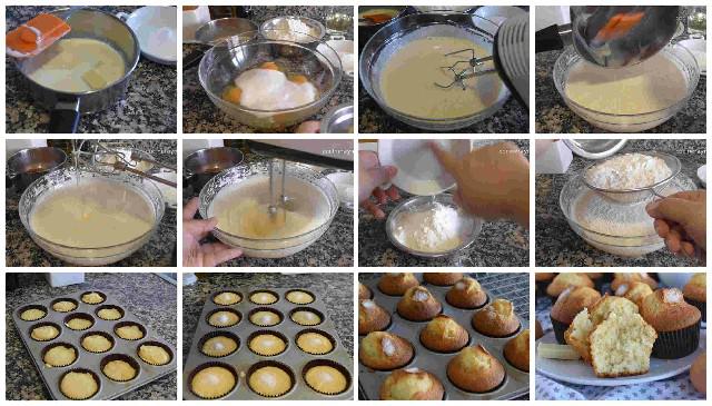 Elaboración de las magdalenas de chocolate blanco fáciles y esponjosas: