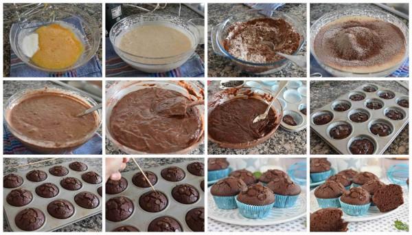 Elaboración de las magdalenas de chocolate fáciles y esponjosas: