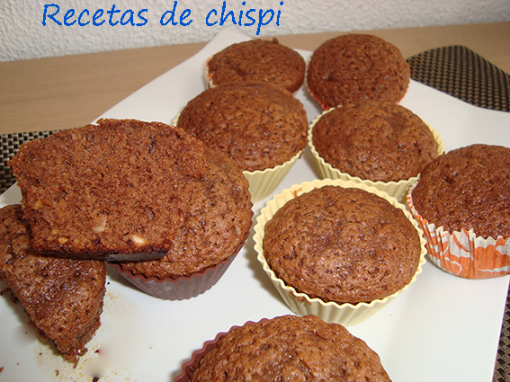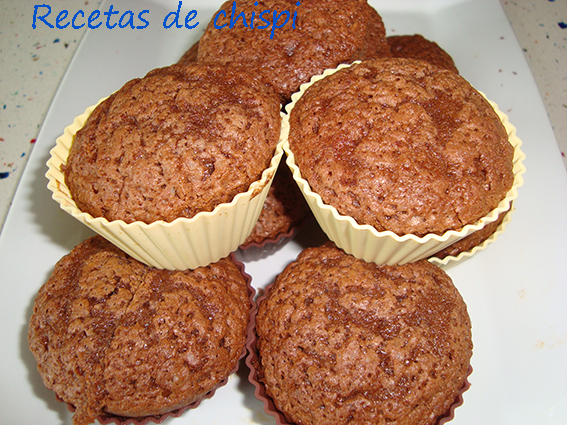 Echar en los moldes, no llenar del todo, y poner en el horno a 200º los primeros 8 minutos y luego bajar a 170º durante 8 minutos.