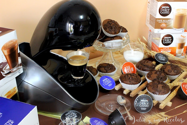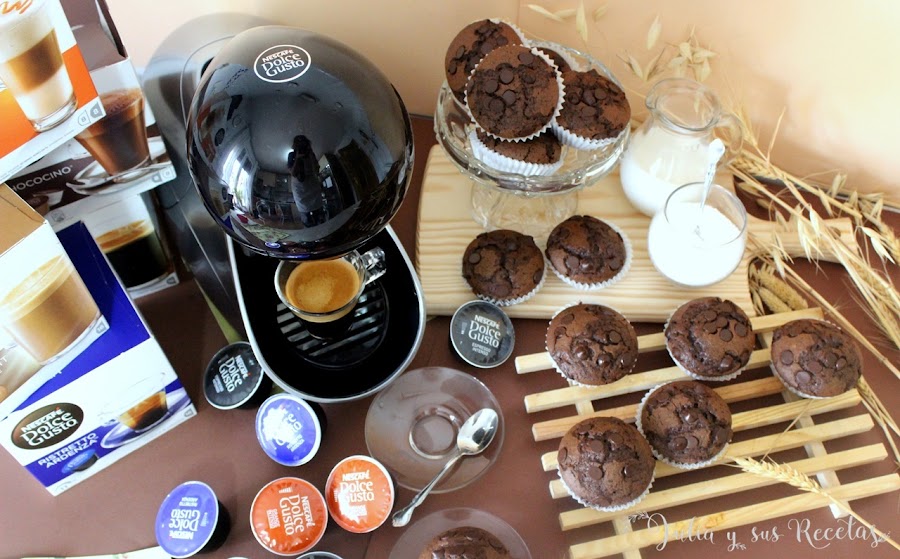 Hoy os dejo un desayuno muy saludable, magdalenas de café con chispas de chocolate. ¿Que hay más sano que un bizcochito hecho en casa con buenos productos, como es el café de Dolce Gusto?