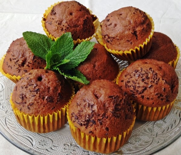 Os traigo el desayuno... unas magdalenas de chocolate aromatizadas con menta fresca.