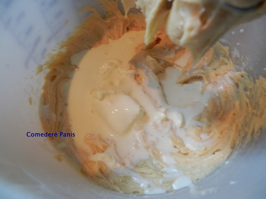 Ahora añade la nata (crema de leche) y si ya se que siempre añadimos los líquidos primero y luego la harina pero esta receta estaba así en el libro"Pastelitos y magdalenas" y no quise cambiar el orden.
