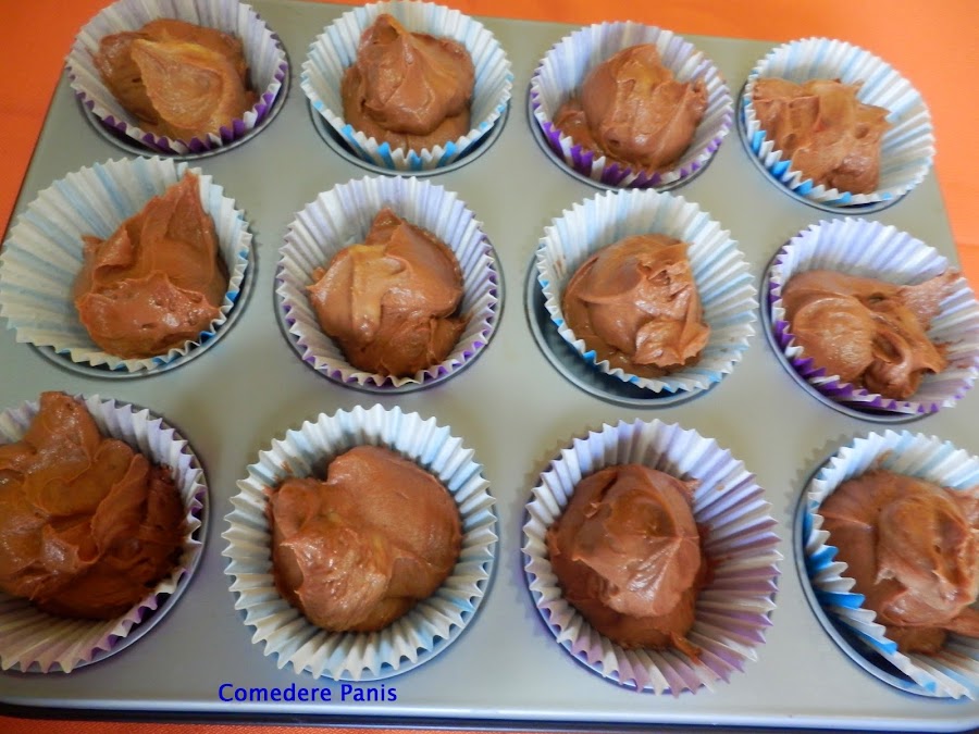 Reparte la masa en los capacitos, te recomiendo que lo hagas con un cuchara de helados o dos cucharas soperas ya que es una masa muy espesa.