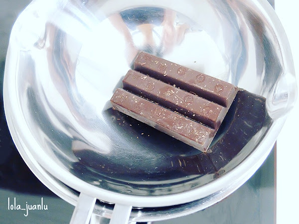 Troceamos las nueces y derretimos el chocolate al baño maría.