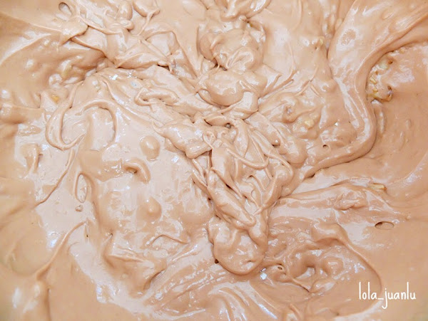 Vamos a ir agregando la leche poco a poco sin dejar de batir. Hacemos lo mismo con la mezcla de harina y levadura. A continuación añadimos el chocolate sin dejar de batir y, por último, las nueces y removemos bien.
