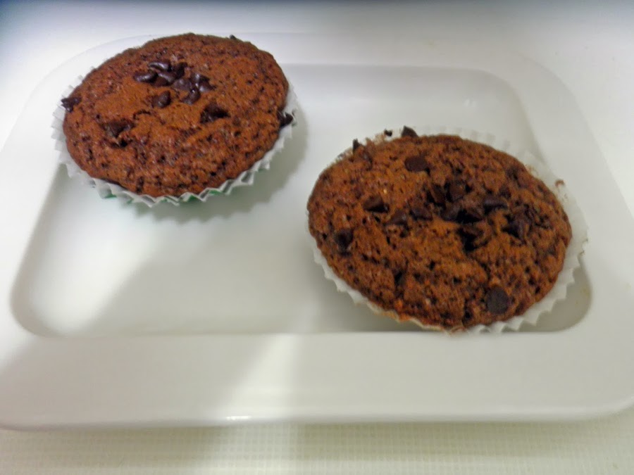 Las pepitas de chocolate se pueden echar en la mezcla o como hice yo, antes de verter la mezcla echar unas pocas en los moldes y al terminar de rellenarlos echar el resto de pepitas de chocolate.