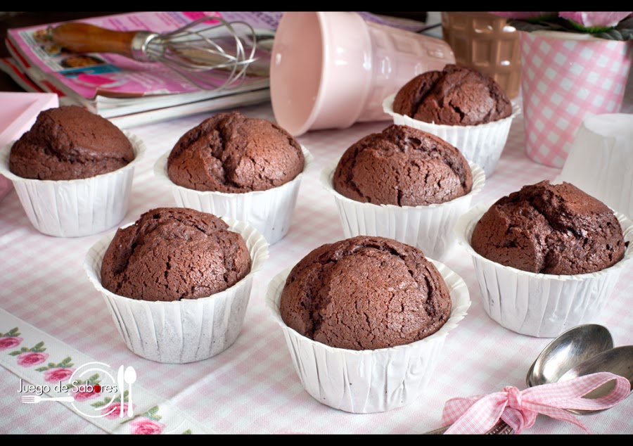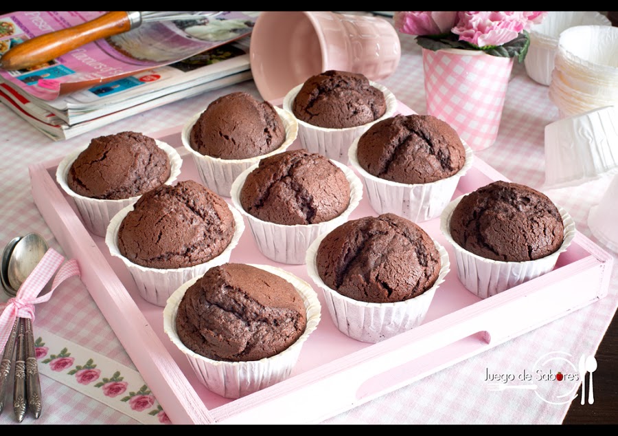 Aún recuerdo cuando de pequeñas íbamos al horno del pueblo a ayudar a hacer mantecados, marquesas, rosquillas de palo y magdalenas. Solíamos ir unos días antes de que empezara la Semana Santa y para nosotras era todo un acontecimiento. Previamente habíamos pasado por el gallinero para hacer acopio de huevos, la base de la repostería. La panadería cerró hace años porque en los pequeños y cada vez más despoblados pueblos de Castilla tienen poco futuro. Pero la tradición de hacer estos dulces continuó en casa, especialmente las magdalenas. Casi siempre hacíamos las clásicas, pero desde hace unos años los más chocolateros de la familia nos han pedido que variásemos y que introdujéramos el chocolate. Al principio recelamos, pero parece que ya gustan a todos. Y en éstas estamos.