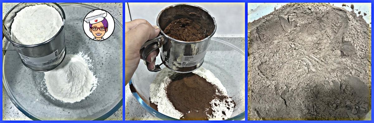 Tamizamos la harina, el cacao y la levadura un par de veces.