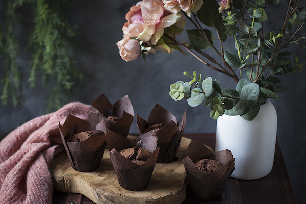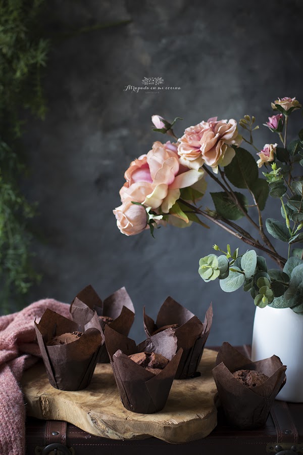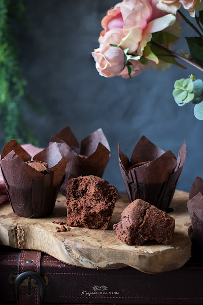 Estas magdalenas han sido en casa un visto y no visto, por poco no llegan ni a la foto, y eso que son grandecitas. Pero el chocolate es la perdición de todos o casi todos. De nuevo este tipo de recetas se convierten en la merienda o desayuno perfecto paras nuestros niños. He usado la receta de Miss Gourmand, aunque he añadido un huevo más a la masa, además yo he usado moldes grandes y me han salido 7 y a ella le salen 12 en moldes tradicionales.