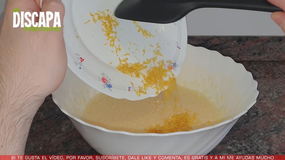 3Después añadimos la ralladura de un limón y seguimos batiendo.