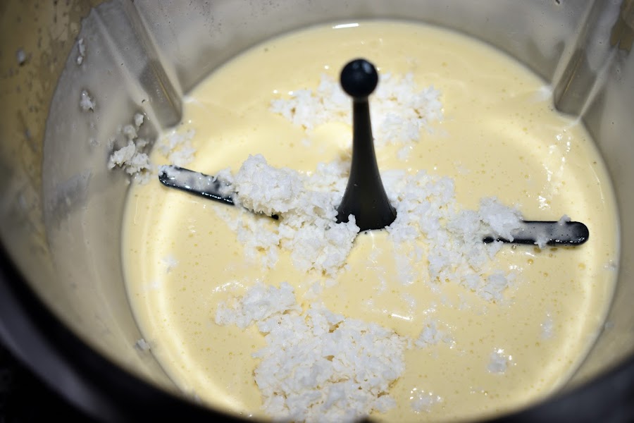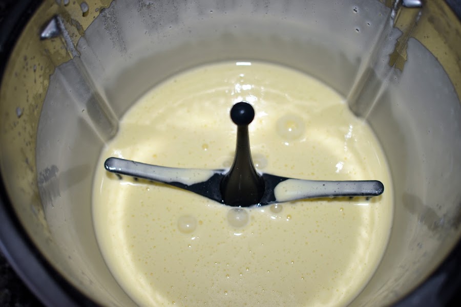 Vierte el aceite, la leche de coco y la pizca de sal dentro del vaso y ponemos 20 seg./vel. 3.