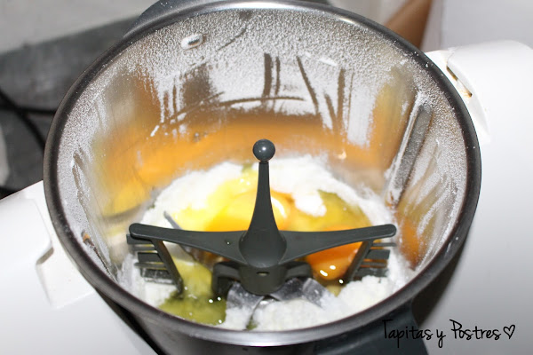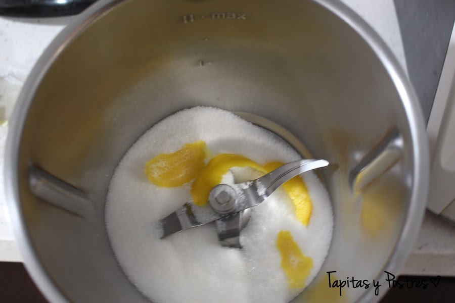 Primero vamos a pulverizar el azúcar con la piel de limón 5 segundos a velocidad 10.
