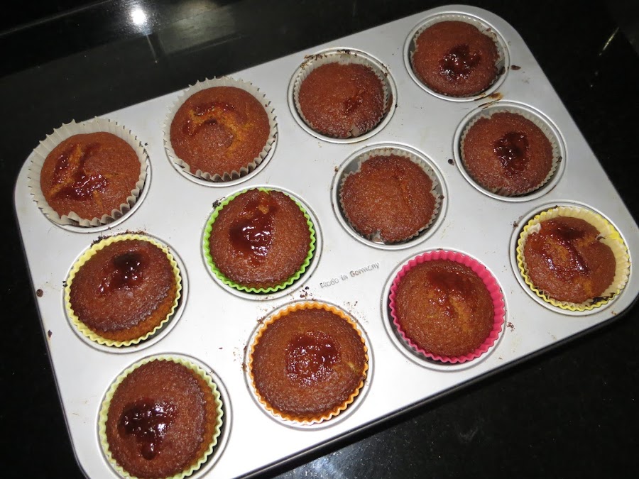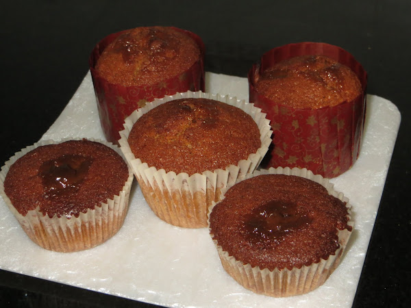 Cogemos las cápsulas y las rellenemos con un poco de masa, echamos una cucharadita de dulce de leche y seguimos rellenando con más masa hasta llenar ¾ partes de la cápsula. Finalmente echamos un poco de dulce de leche por encima y metemos al horno durante 15 minutos a 180º y cuando hayan subido y estén doradas significarán que están cocinadas. Sacamos las dejamos enfriar y ya están listas para comer.