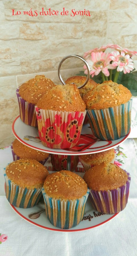 Rellenamos las cápsulas de las magdalenas y espolvoreamos con semillas de sésamo.
