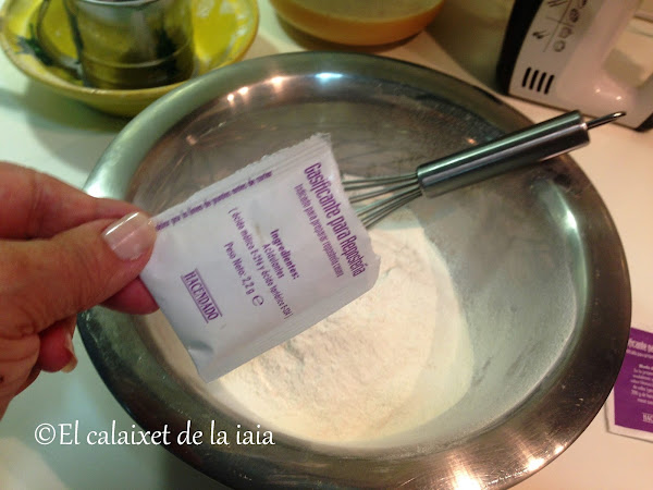 añadimos el sobrecito de gasificante blanco, (lo podéis sustituir en caso de no encontrar, por un sobrecito de levadura química en polvo)