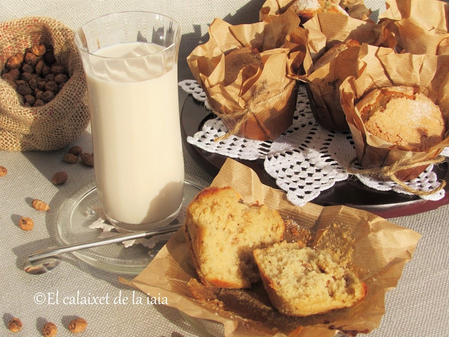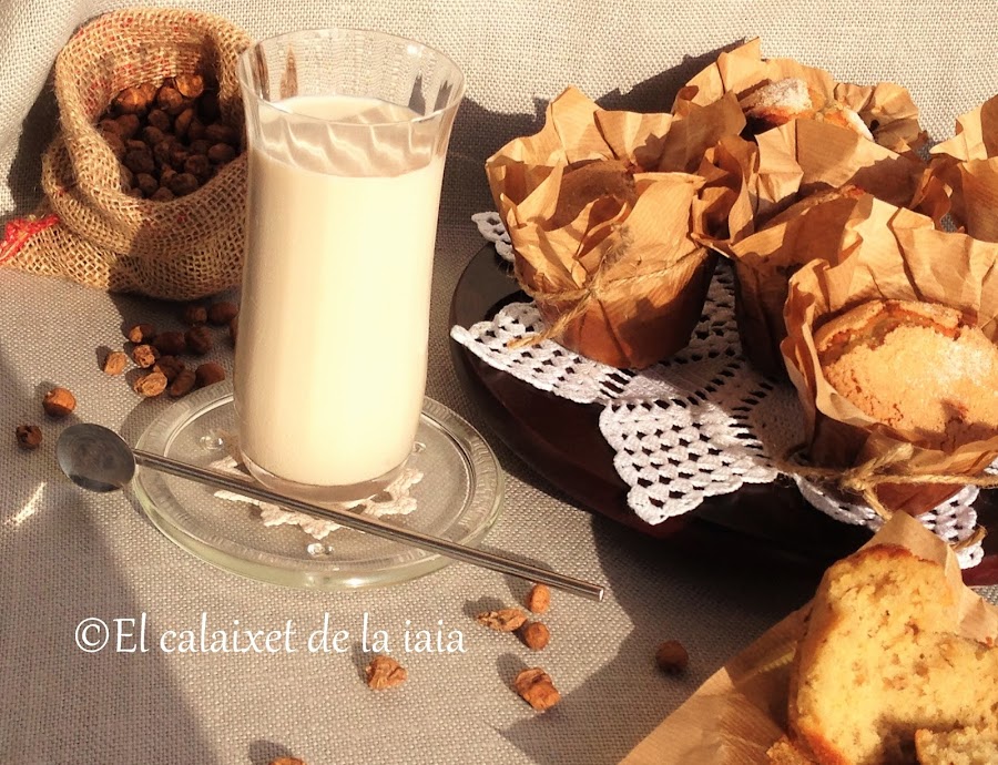 En mi casa no falta nunca, y en el pueblo, tampoco, allí no hay ni horchaterías ni nada parecido, (y ni me pagan ni me la regalan, como ninguno de los productos que os recomiendo), y es por éso que un día se me ocurrió preparar unas "valencianes dorxata" o magdalenas de horchata, sustituyendo la leche y parte del azúcar por el concentrado de chufa, hoy comparto ésta receta por si os apetecen ;)