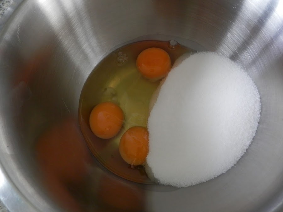 Vamos a comenzar batiendo los huevos con el azúcar hasta que blanquee un poco.