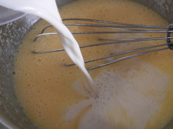 Añadimos a continuación el aceite y seguido del aceite, la horchata.