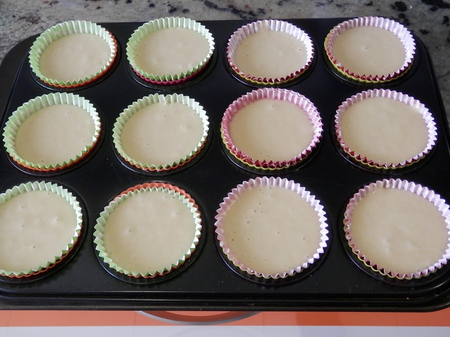 Rellena las cápsulas de las magdalenas unas tres cuartas partes y mete en el horno.