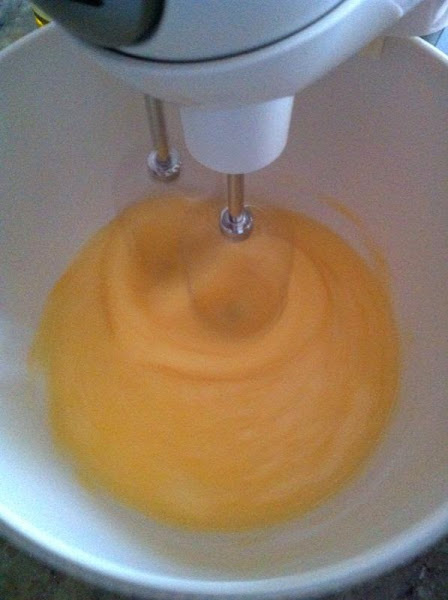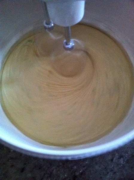 A continuación, añadiremos la leche, y el aceite, poco a poco. Sin dejar de batir.
